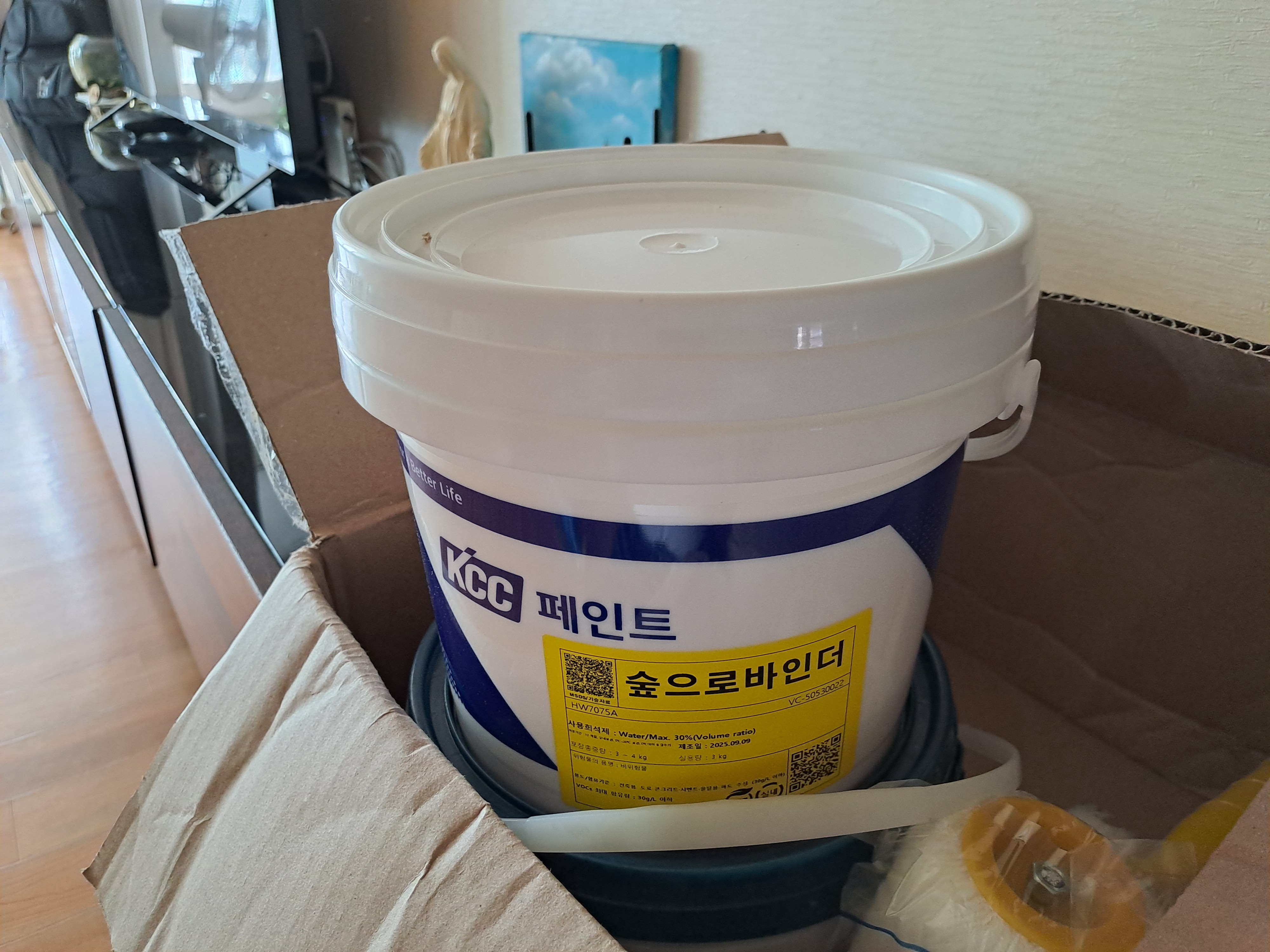 8일 밤에 주문 넣었는데, 페인트 및 실리콘은 10일 낮에, 바인드, 퍼티 롤러 등은 11일 어제 도착했다. 근디 롤러대가 누락. 톡으로 보내달라고 요청.